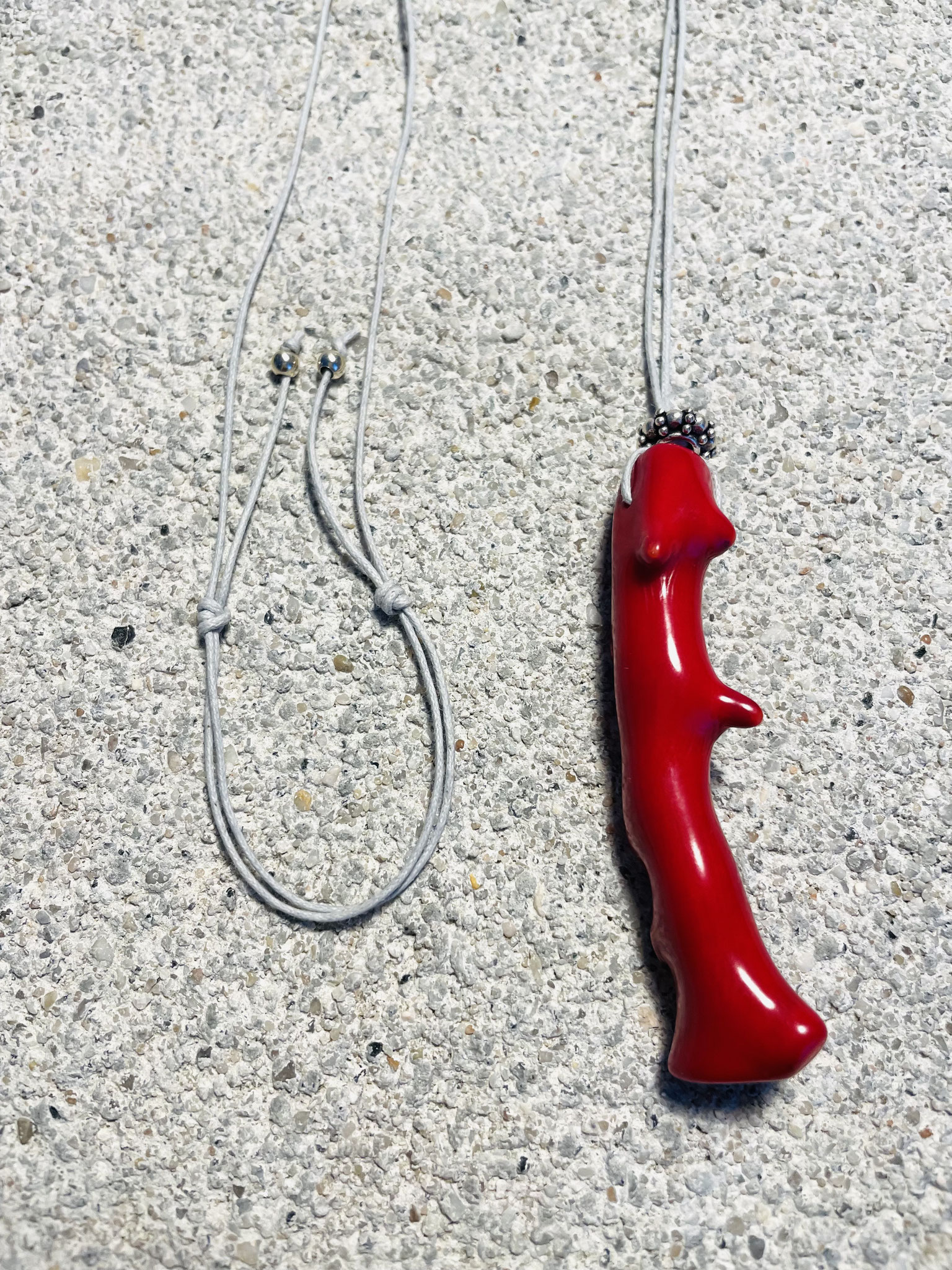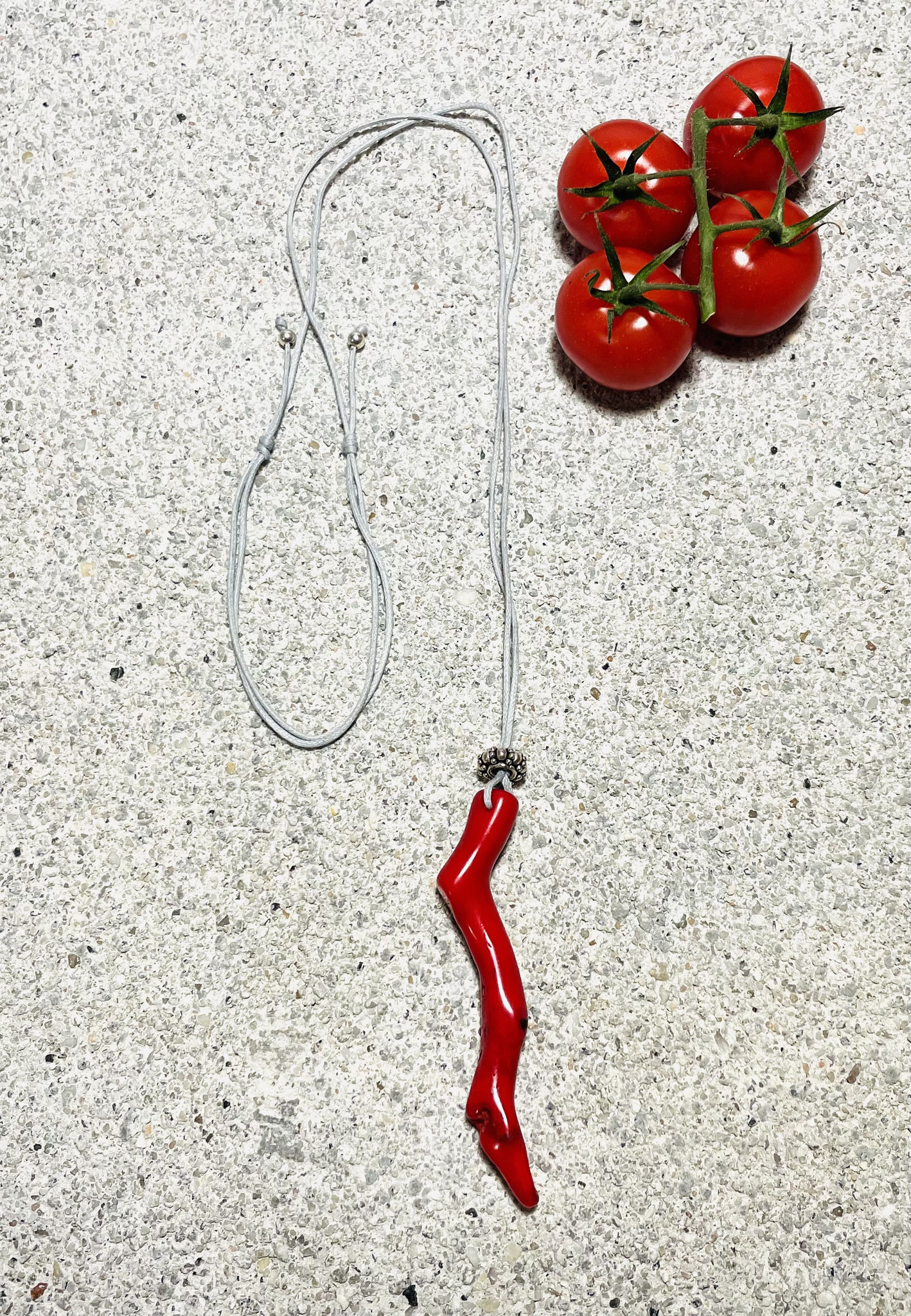 Achtung Pulsbeschleuniger. Keine Chili, sondern eine ganz individuell geformte, leuchtende Bambuskoralle ist der Eyecatcher der Mika Kette. Sie geht mit Loafer wie mit… Bergsteigerstiefel. Smile and the world smiles back :) .